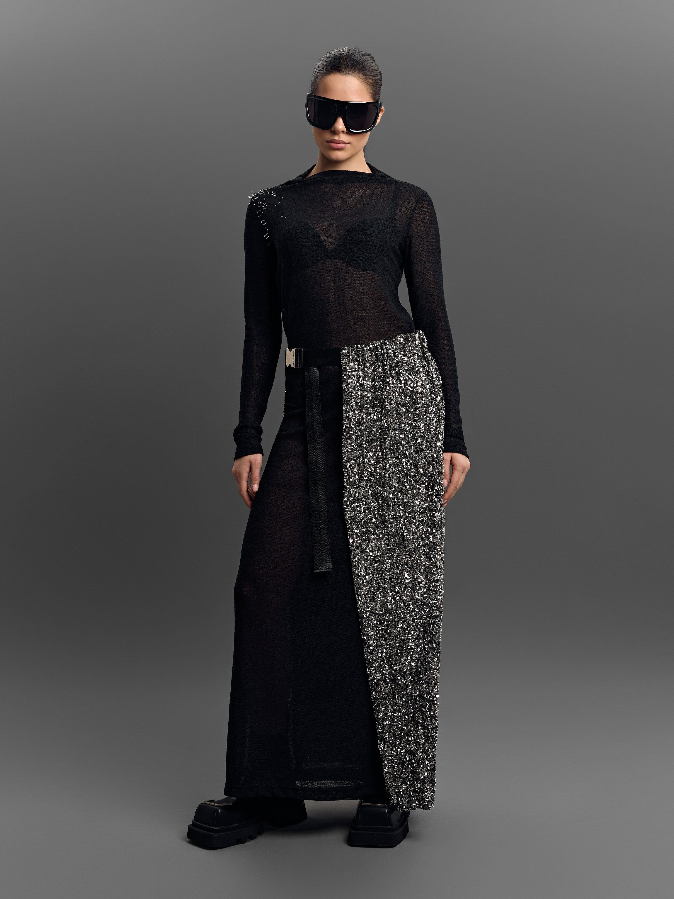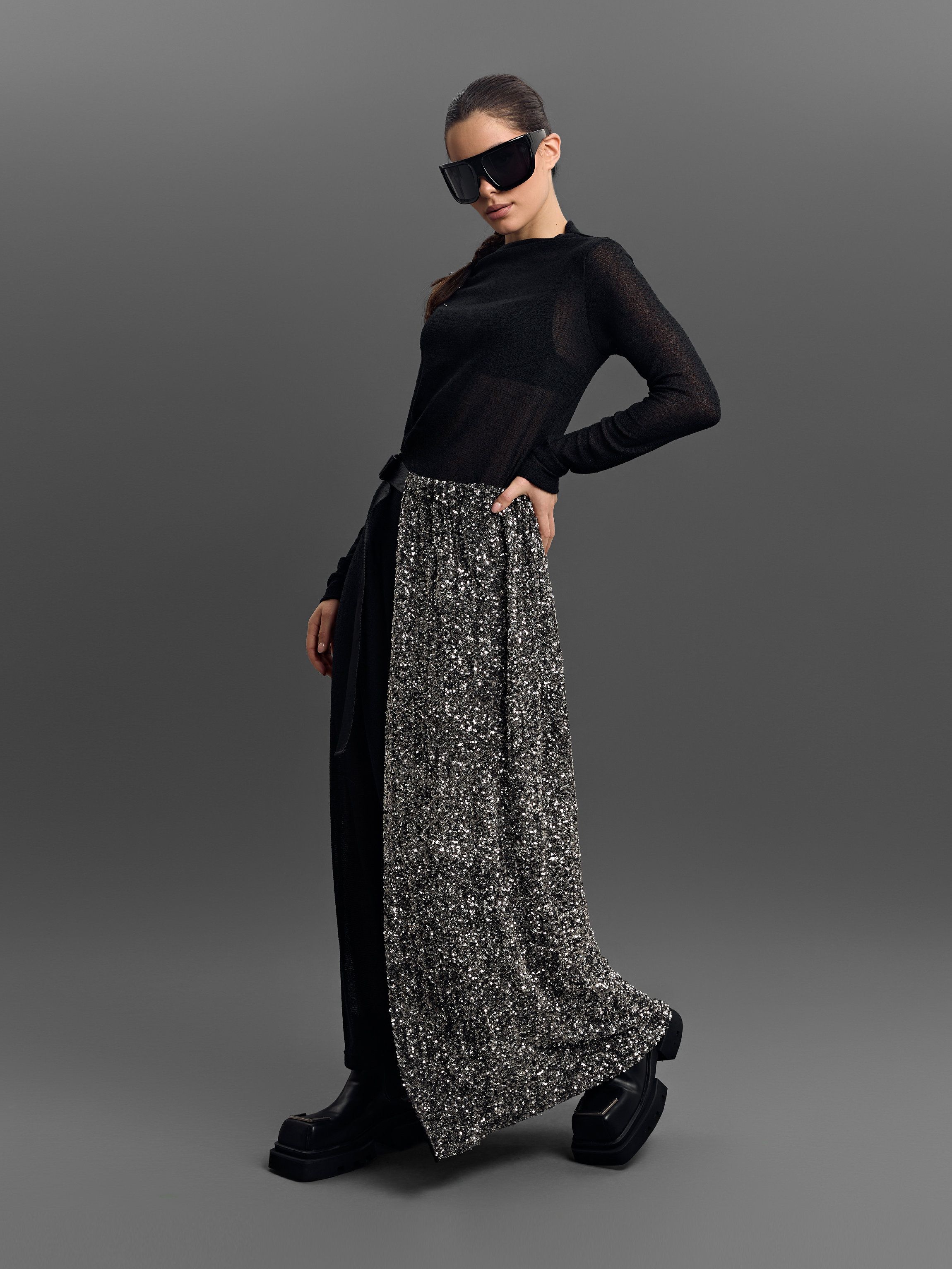 Яркий праздничный аксессуар, будто сотканный из новогоднего дождика. Благородный блеск темно-серебристых пайеток создаёт истинно волшебную атмосферу.