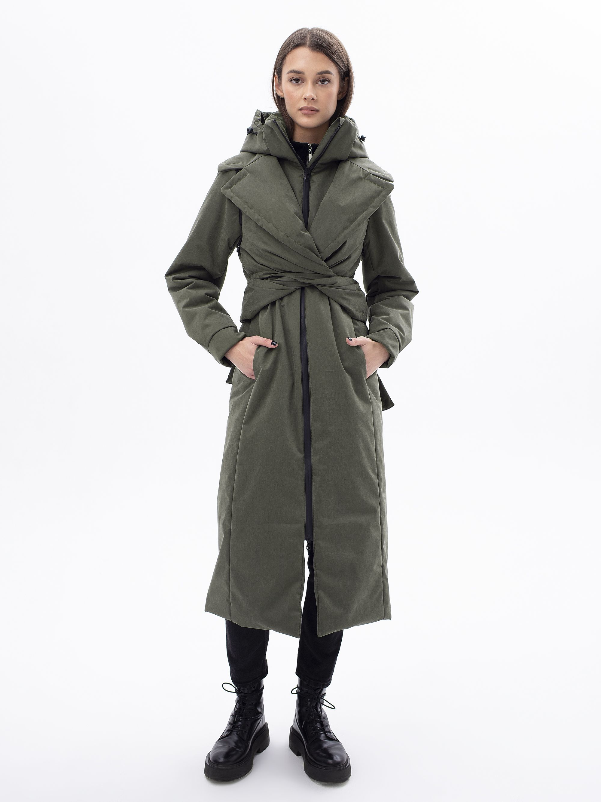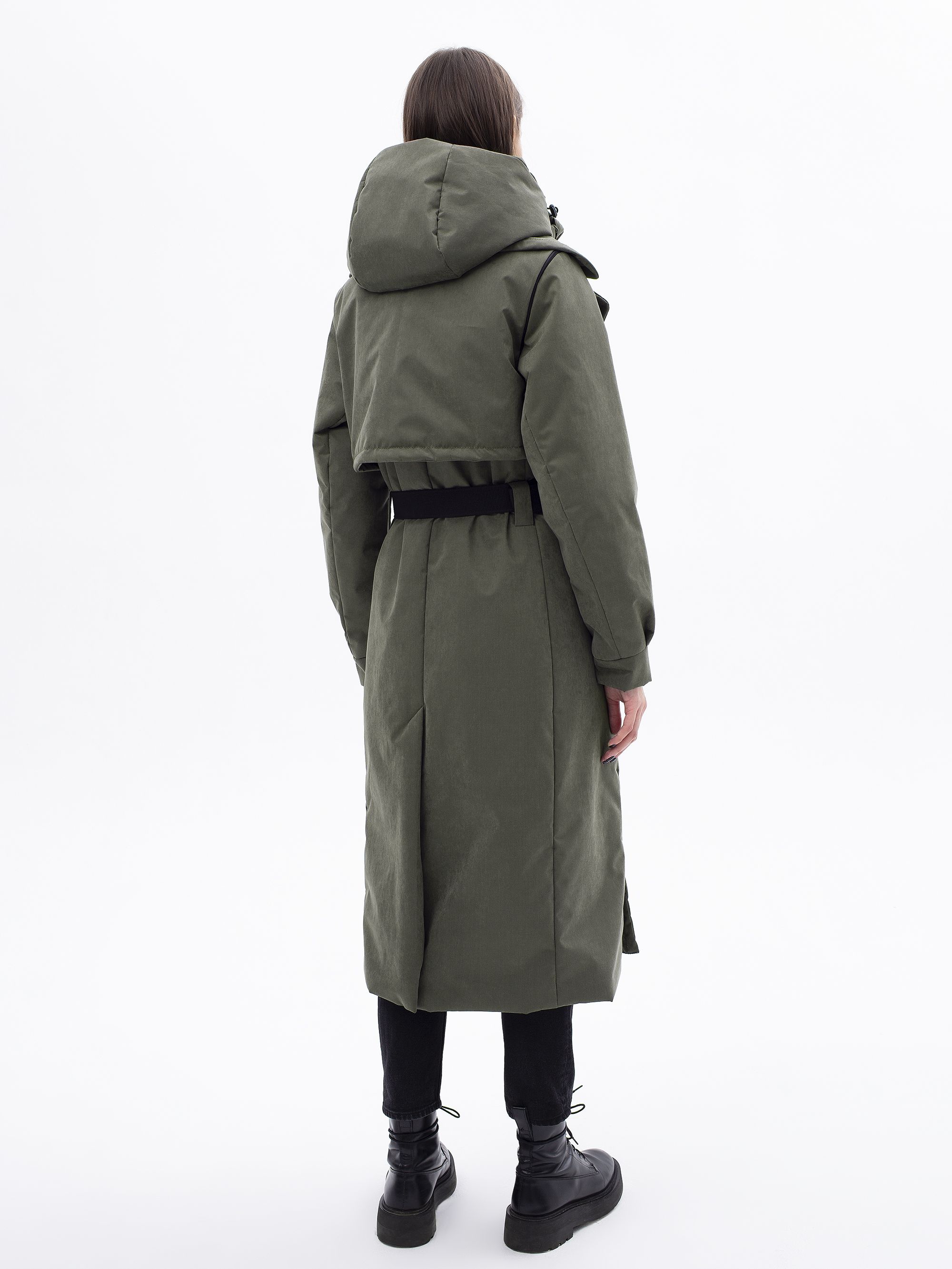 Концептуальная зимняя парка-трансформер со съемной жилеткой и капюшоном. Удобный пояс с фастексом в комплекте. Ценральная застёжка на водооталкиващую молнию.