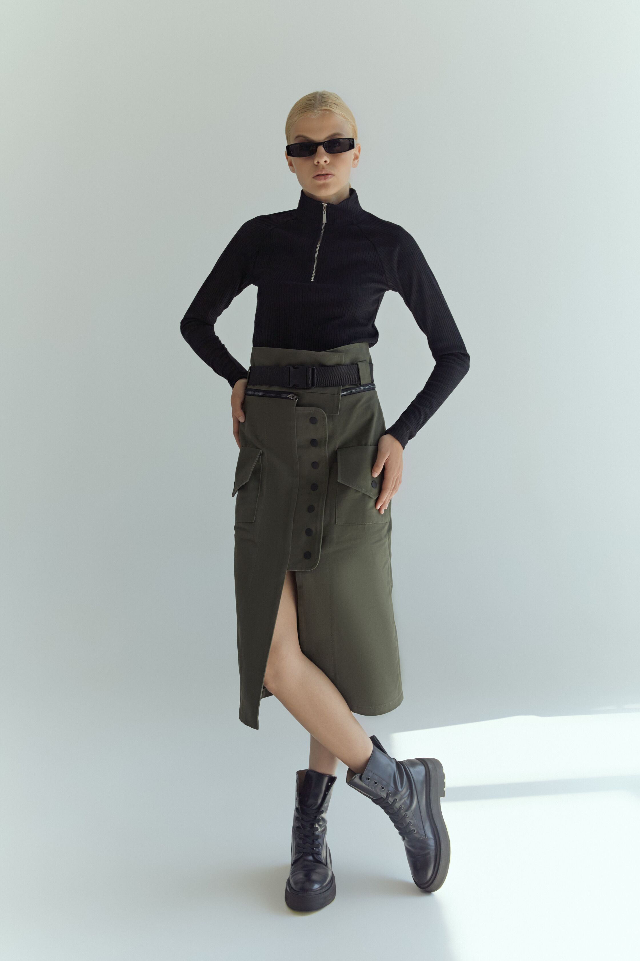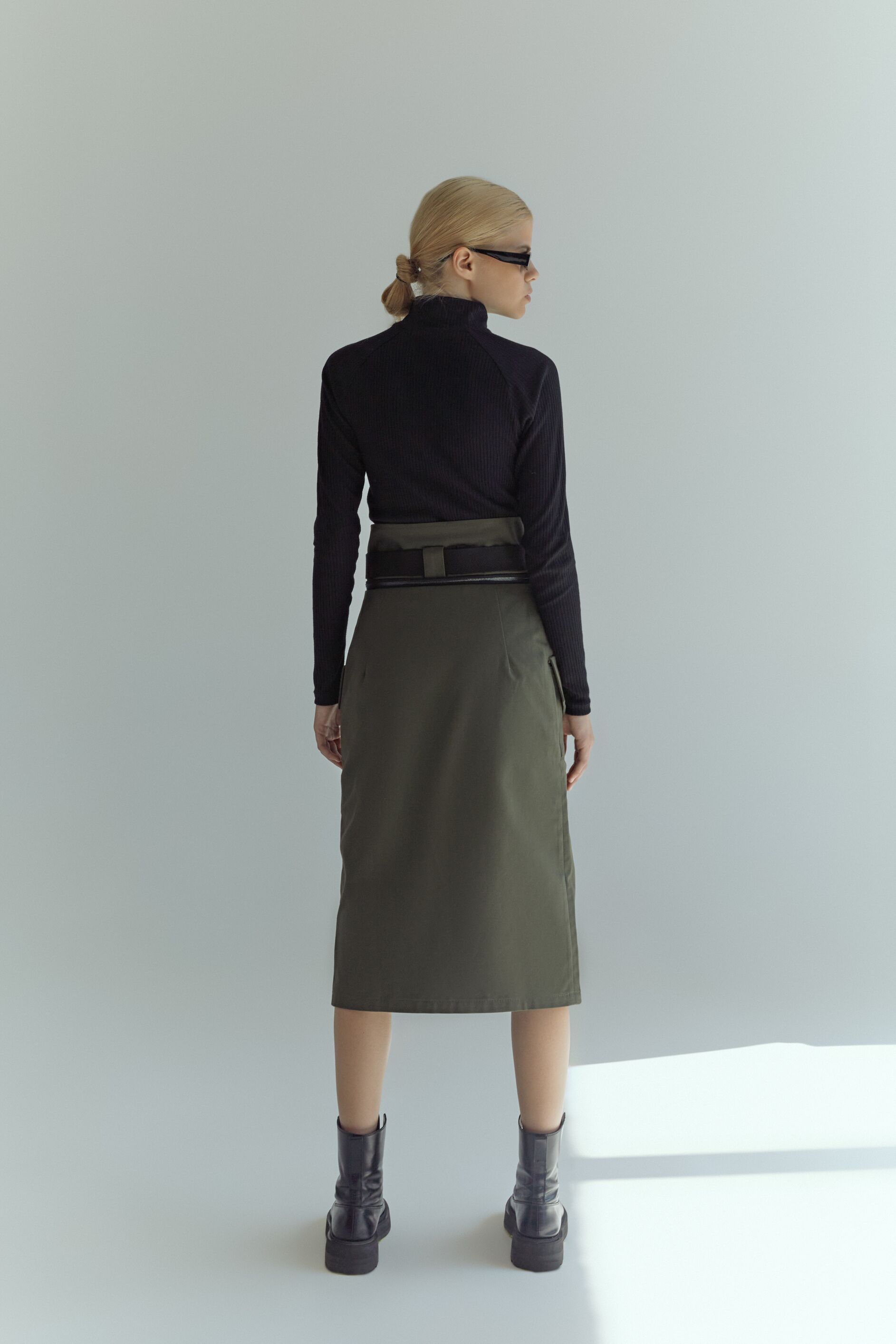 Обратите внимание, что после того, как вы зафиксировали юбку поясом, у вас появляется возможность подрасстёгивать кнопки и подол юбки так, чтобы получался эффектный хвост. - Сочетания