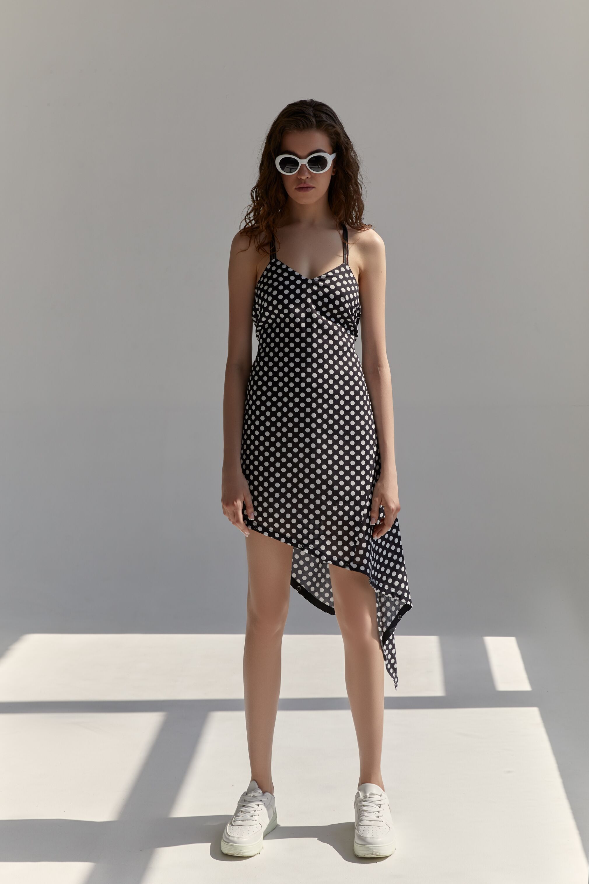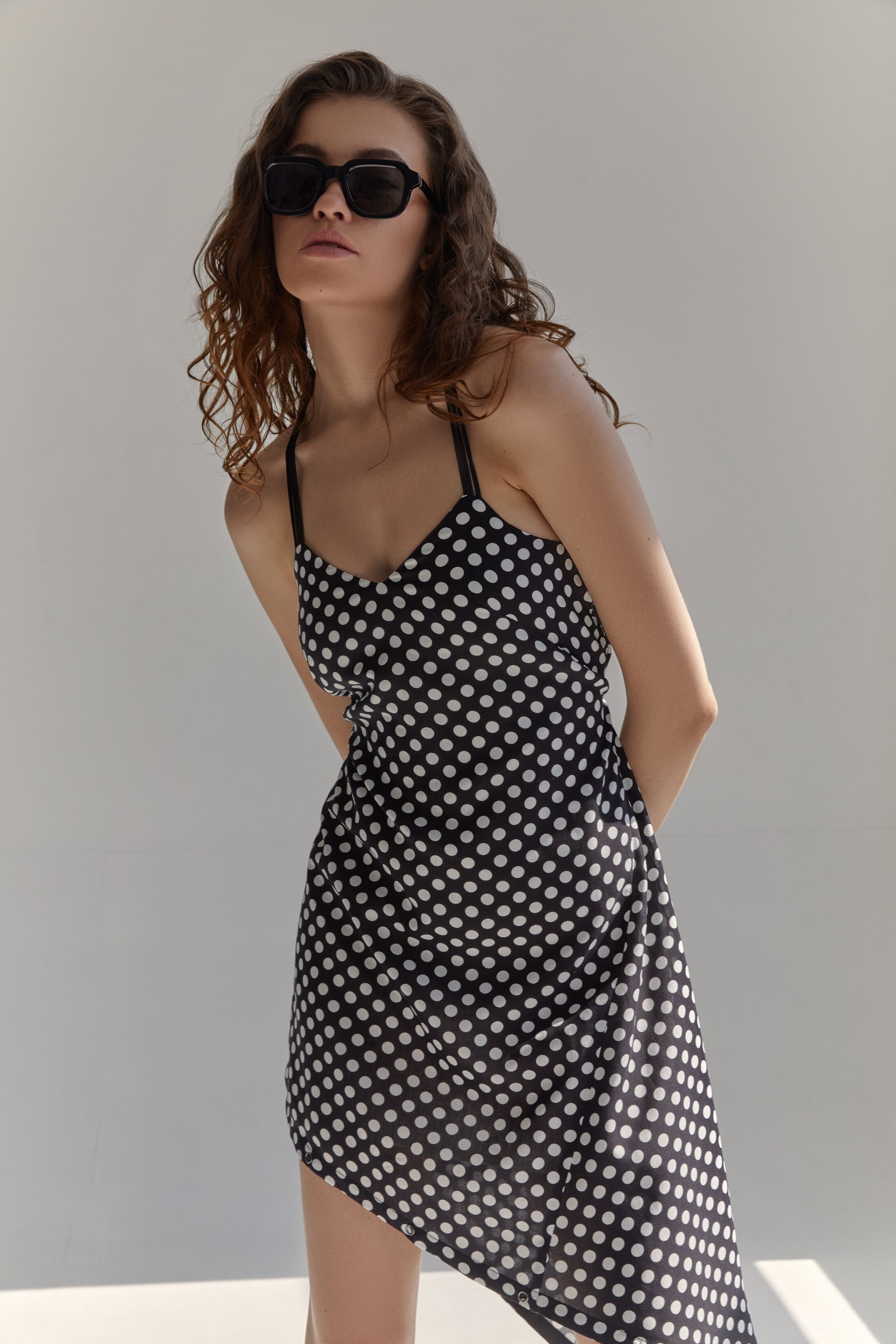 Второй "игровой" элемент — бретельки. Попробуйте завязать их на талии, крест на крест на спине или за шеей. Для этого в зоне талии и подмышками предусмотрены тонкие шлевки.